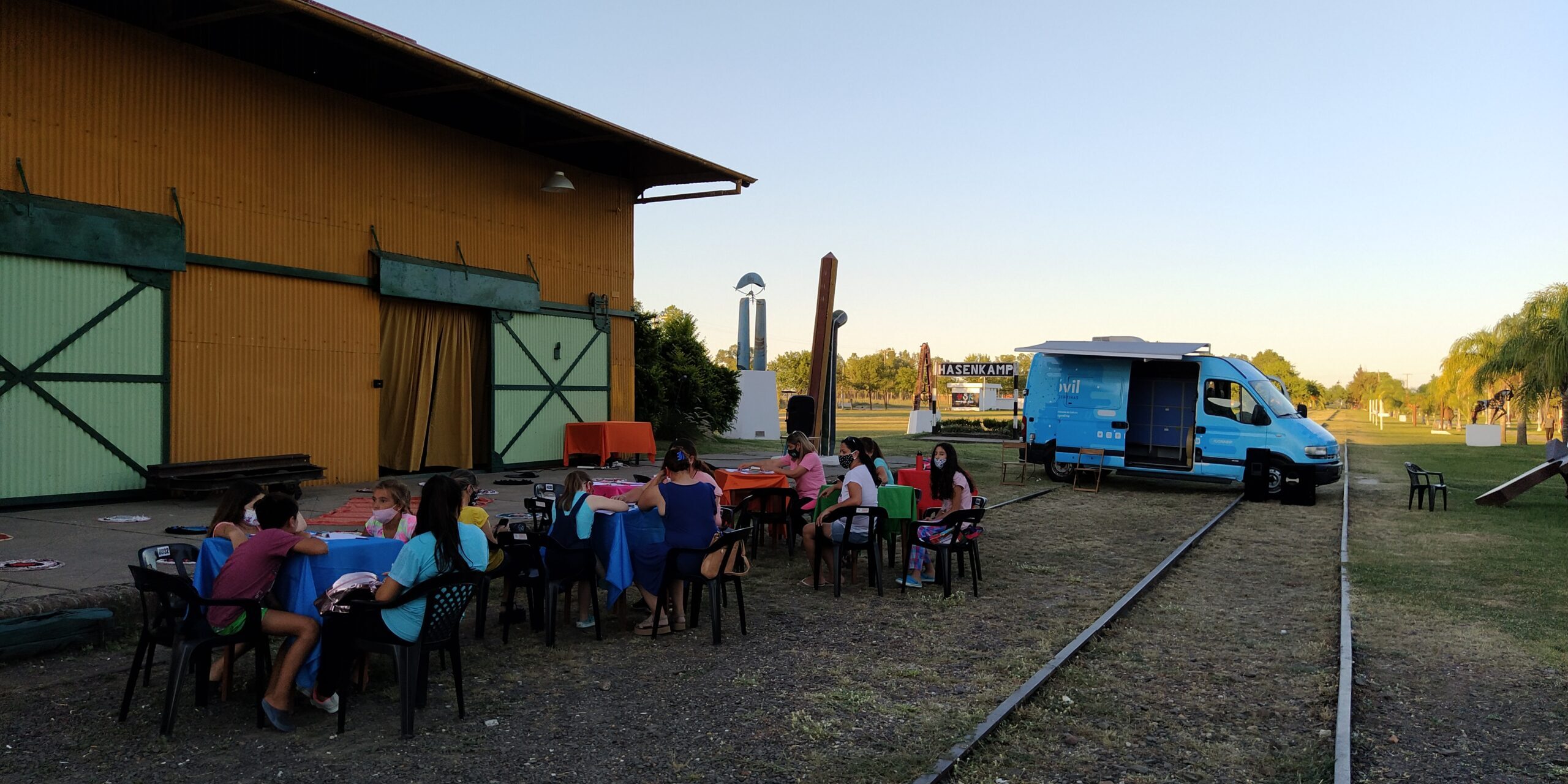 Esta actividad es parte de un convenio de cooperación entre la Comisión Nacional de Bibliotecas Populares (CoNABiP) y la Secretaría de Cultura de la Provincia de Entre Ríos, por el cual un vehículo equipado como biblioteca y centro cultural ambulante, recorre diferentes localidades de la provincia. Para el caso de Hasenkamp, su visita fue gestionada por el Area de Cultura y Turismo por intermedio de nuestra Biblioteca Popular Sebastián Ger Villacampa, la cual pertenece a la Red Social de Bibliotecas Populares de la CoNaBiP.