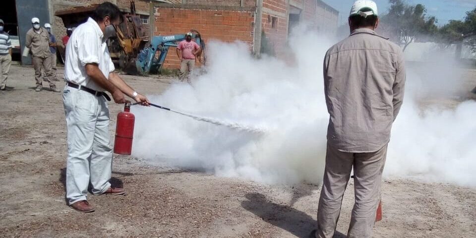 La capacitación contó con dos etapas: en la primera se desarrolló la parte teórica mediante una presentación de power point, donde se explicaron conceptos básicos sobre principios de protección contra incendios, tipos de fuego, tipos de extintores más apropiados para cada situación y de qué manera actuar. En la segunda parte, que fue una práctica mediante un fuego real controlado, el personal municipal manipuló un matafuego real para aprender a manejarlo y visualizar los efectos de este.