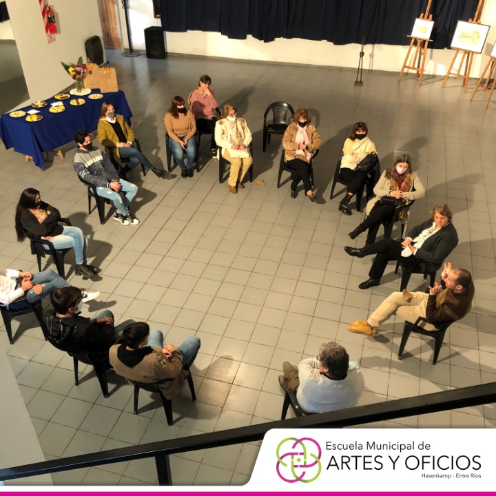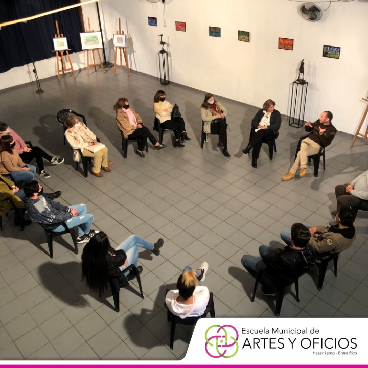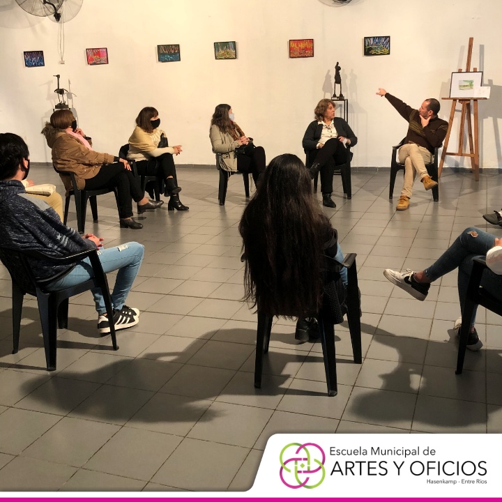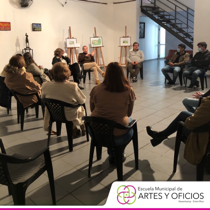 Para culminar, el sábado a las 16 horas, se dictó una charla con los responsables de esta propuesta, destinada a personas que se dedican a trabajar con el arte y contó con la presencia del Intendente Hernán Kisser; la Viceintendente, Josefina Leiva Chaves; el coordinador de Cultura y Turismo, Alejandro Frias y los directivos de la Escuela Municipal de Artes y Oficios, Rosana Folmer y Patricio Villareal.