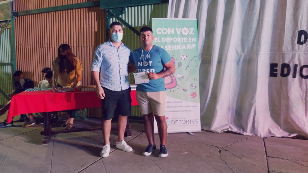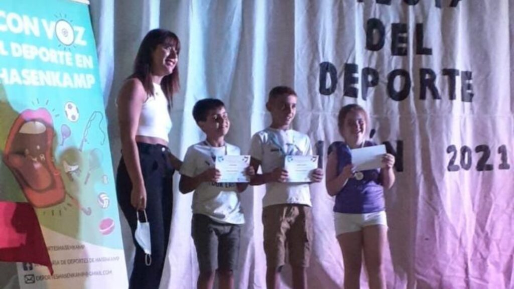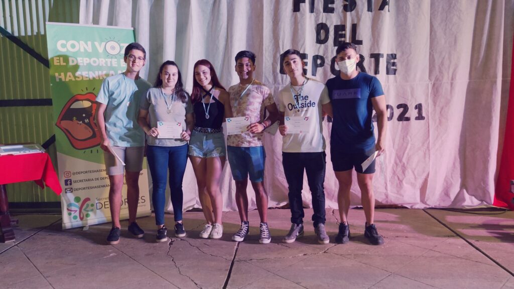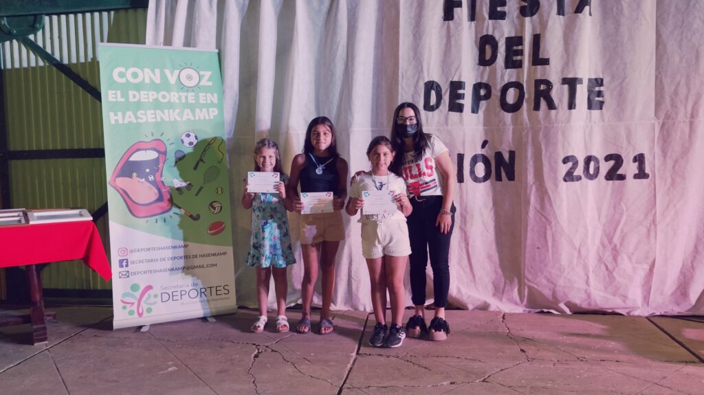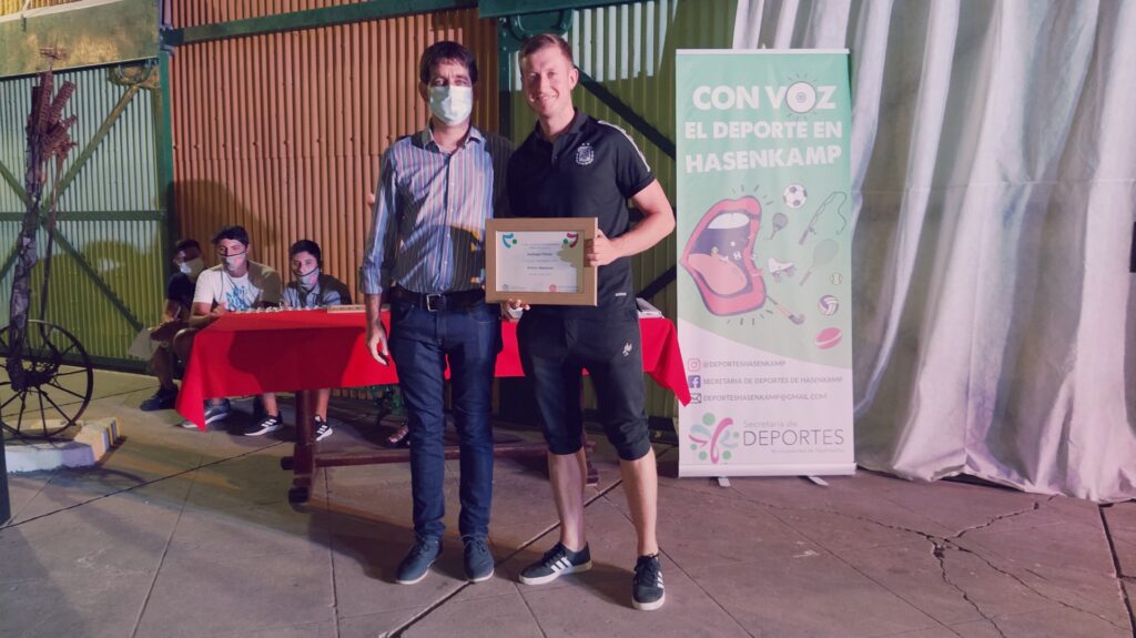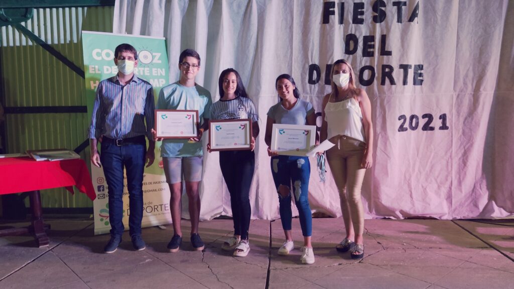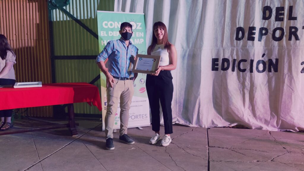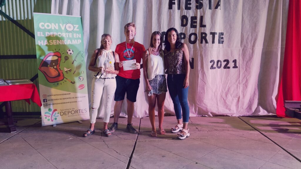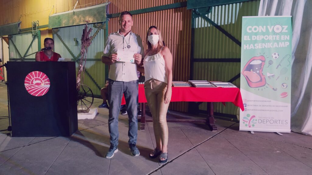 Anoche se llevó a cabo esta celebración deportiva, en la Casa de la Cultura, para destacar a los deportistas que, pese a este año de pandemia, redoblaron sus esfuerzos y obtuvieron logros y méritos en cada una de las disciplinas que desarrollan tanto en los clubes Club Atlético hasenkamp, Club Juventud Sarmiento, en la Escuela Municipal de Deportes, dentro de las instituciones educativas (Escuela N°47 Eduardo y Federico Hasenkamp e Instituto Secundario Mariano Moreno), de manera independiente y en otras localidades; también se destacaron a los deportistas que triunfan en la liga Fútbol Argentino.