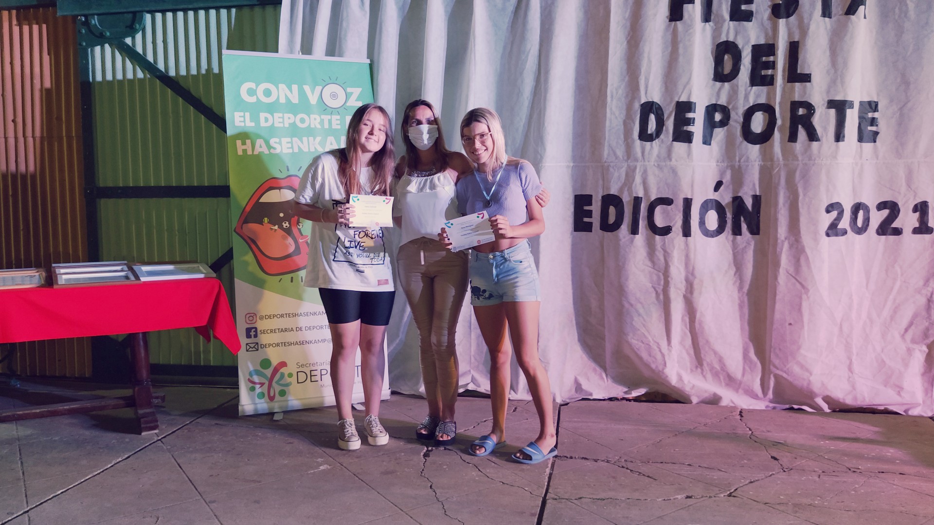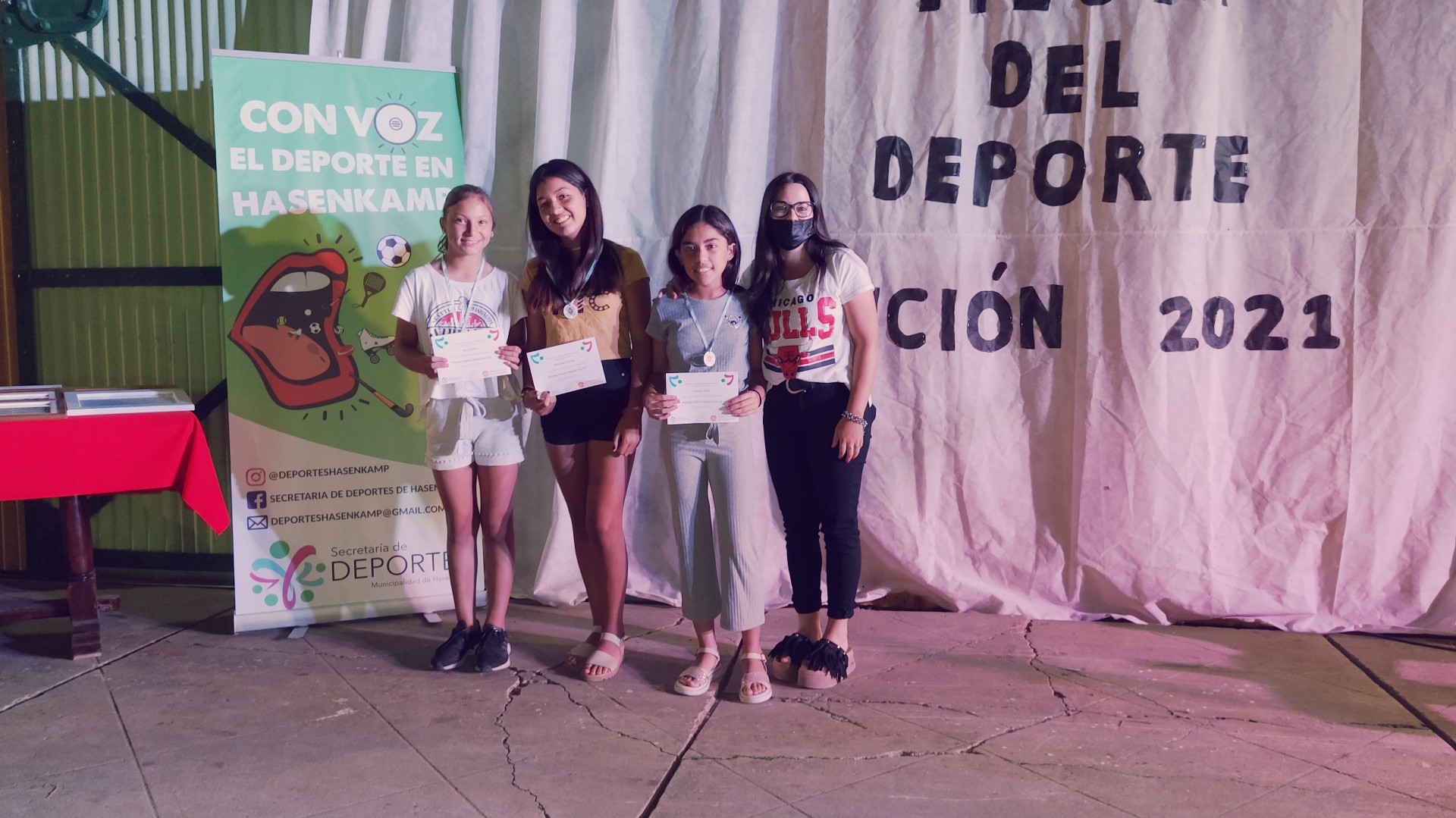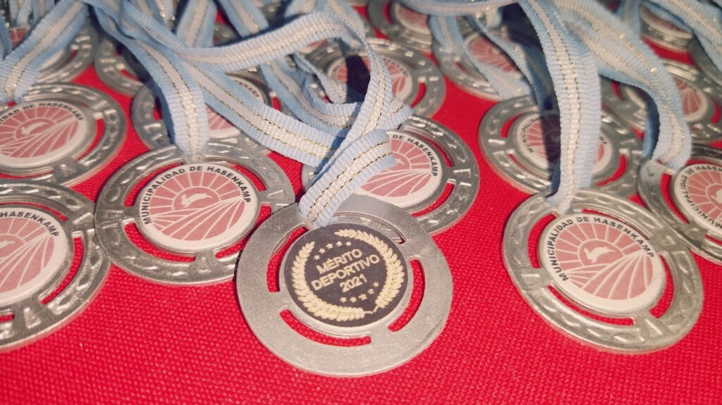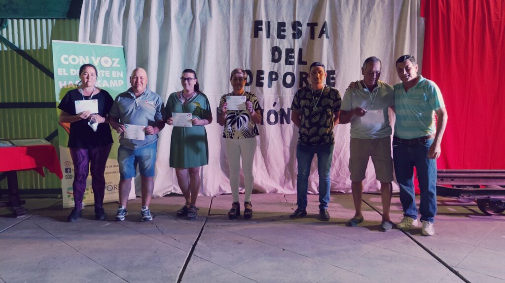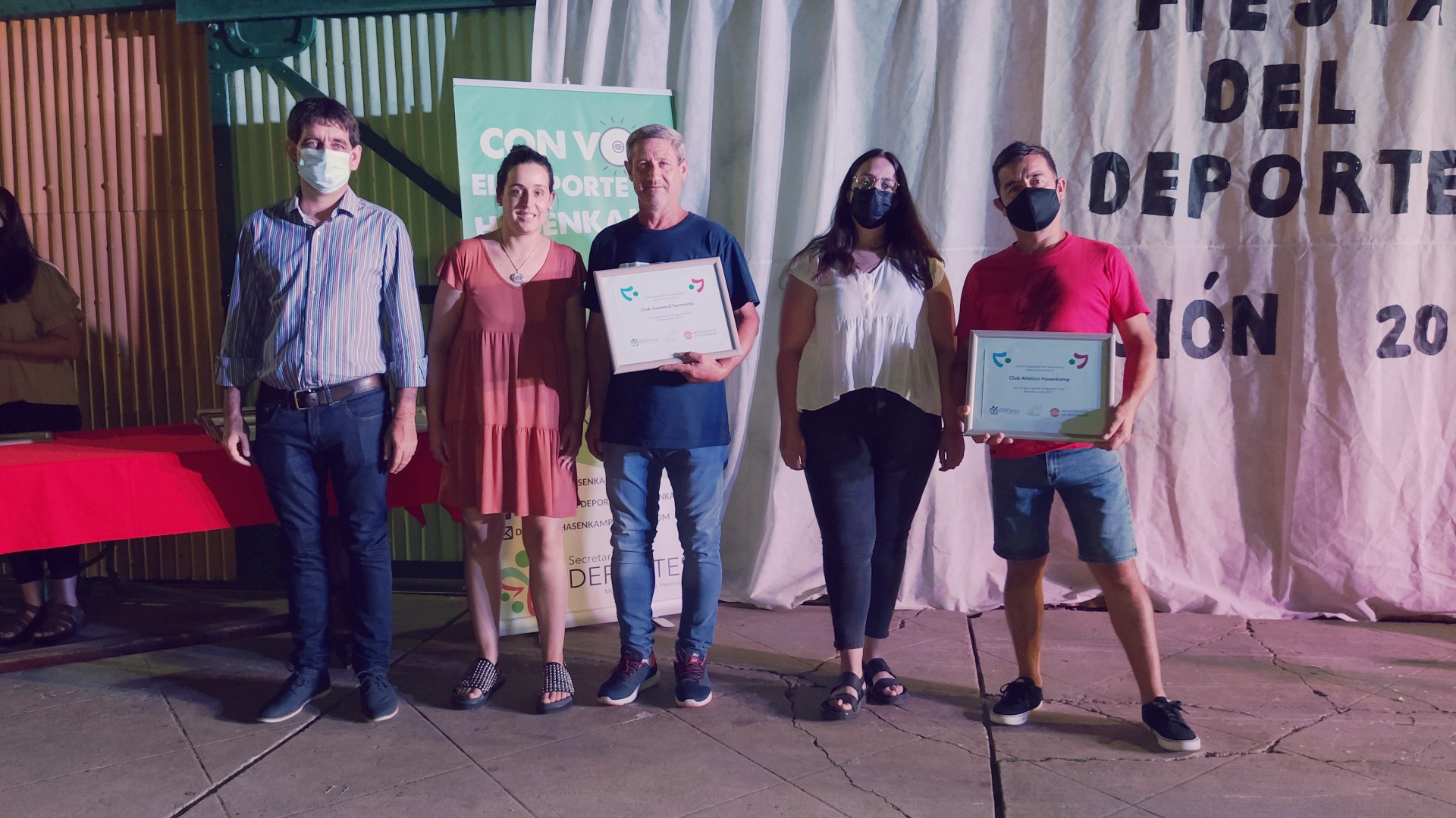 Anoche se llevó a cabo esta celebración deportiva, en la Casa de la Cultura, para destacar a los deportistas que, pese a este año de pandemia, redoblaron sus esfuerzos y obtuvieron logros y méritos en cada una de las disciplinas que desarrollan tanto en los clubes Club Atlético hasenkamp, Club Juventud Sarmiento, en la Escuela Municipal de Deportes, dentro de las instituciones educativas (Escuela N°47 Eduardo y Federico Hasenkamp e Instituto Secundario Mariano Moreno), de manera independiente y en otras localidades; también se destacaron a los deportistas que triunfan en la liga Fútbol Argentino.