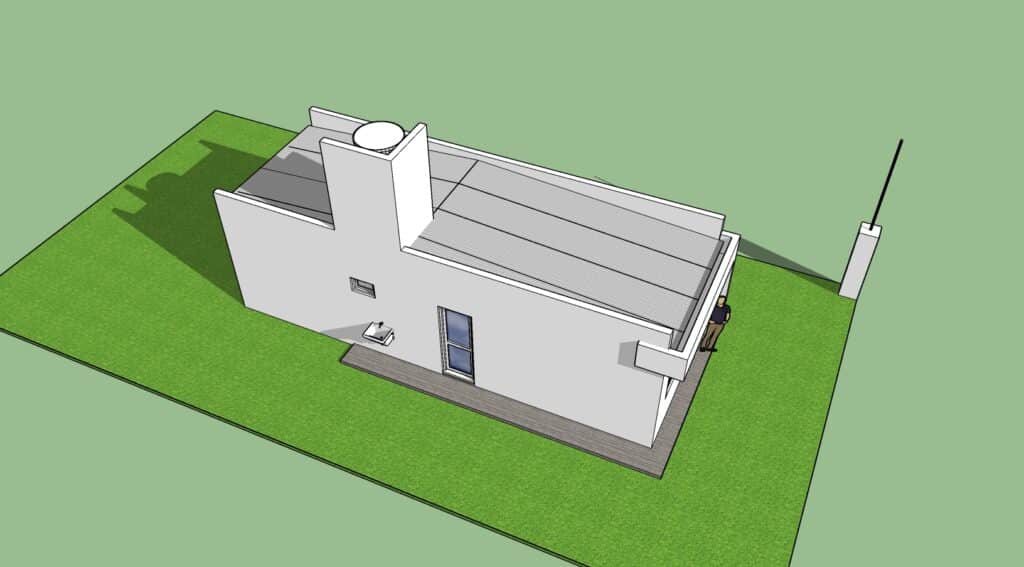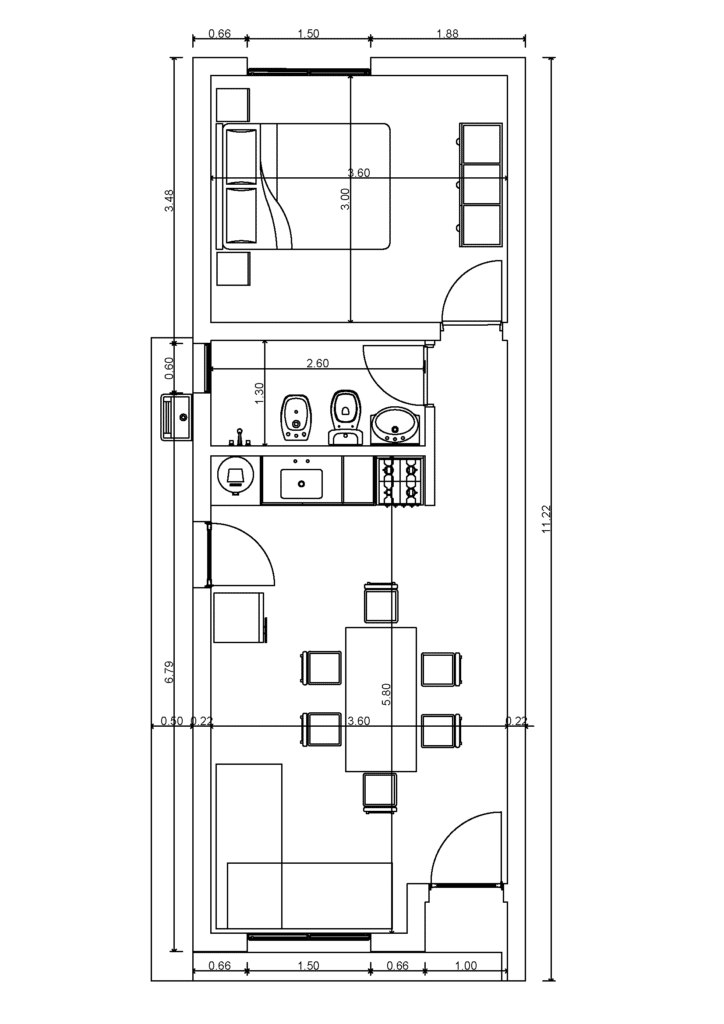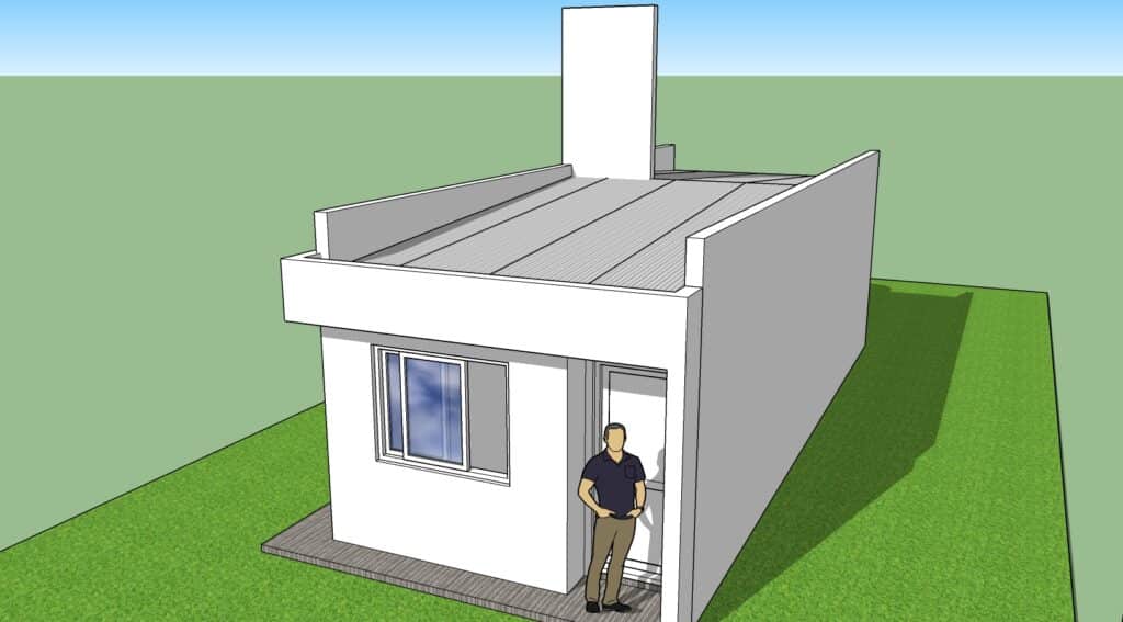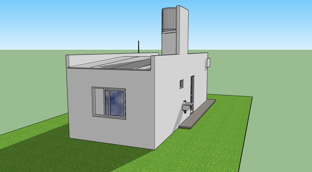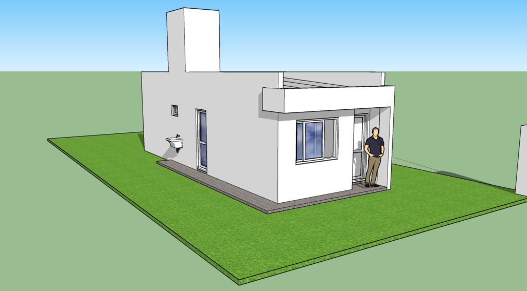 - En cuanto al dibujo de la vivienda adjuntado, se entrega con el baño completo, pero no se incluye el mobiliario que se presenta en la cocina y la habitación, siendo ellos de carácter ilustrativo (Cocina, bacha, mesa, sillas, cama, etc.).