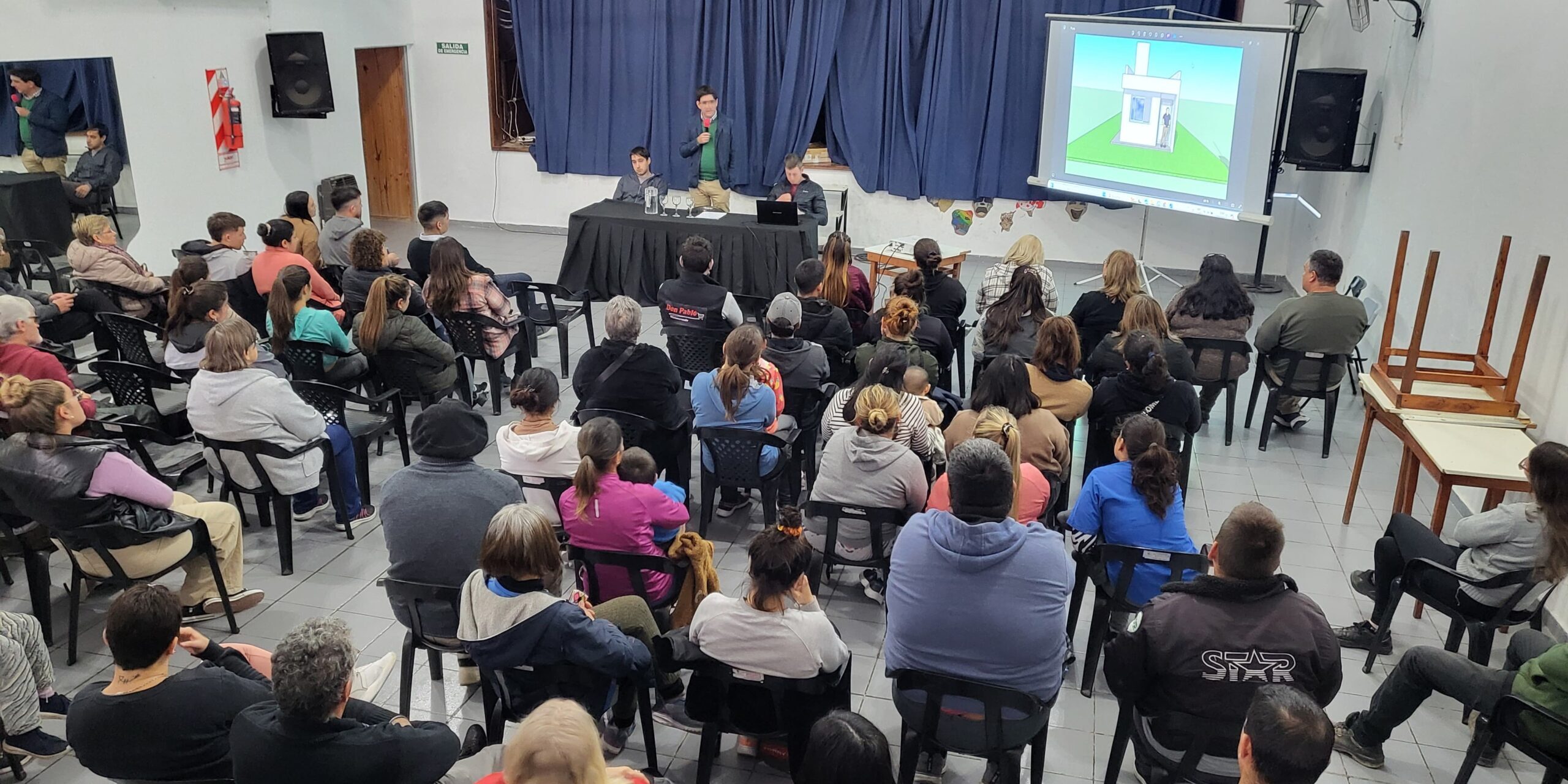 Durante la charla, los ingenieros Santiago Folmer y Franco Marcuzzo presentaron el modelo de vivienda a construir y algunos aspectos a tener en cuenta sobre la misma, como por ejemplo: