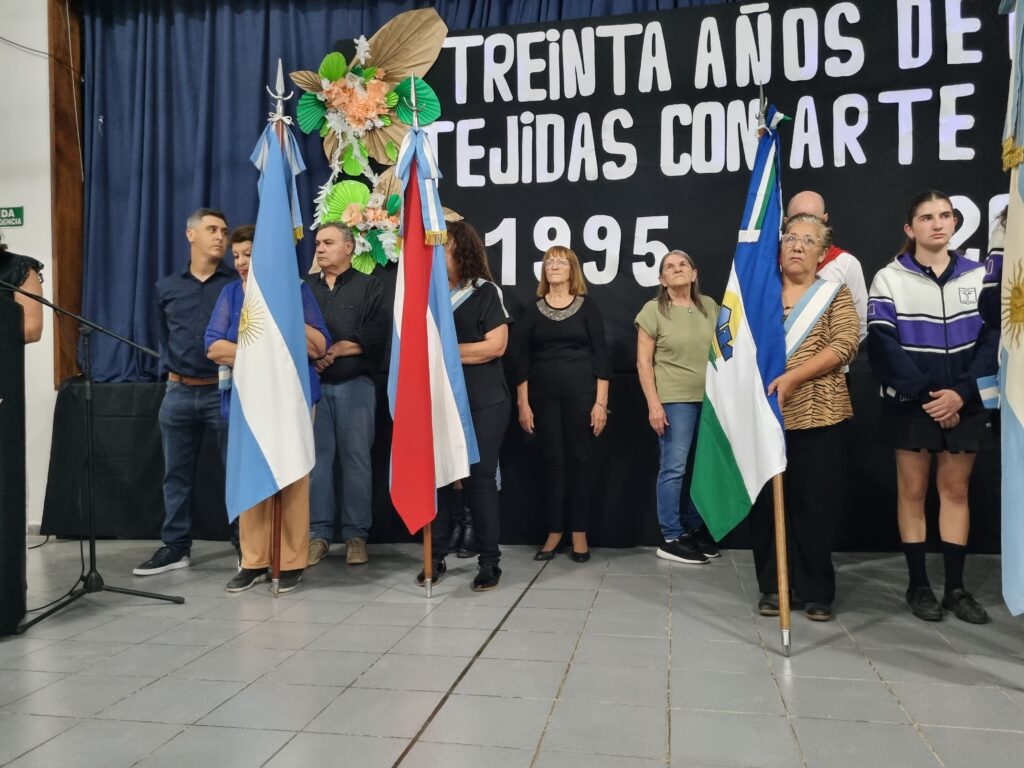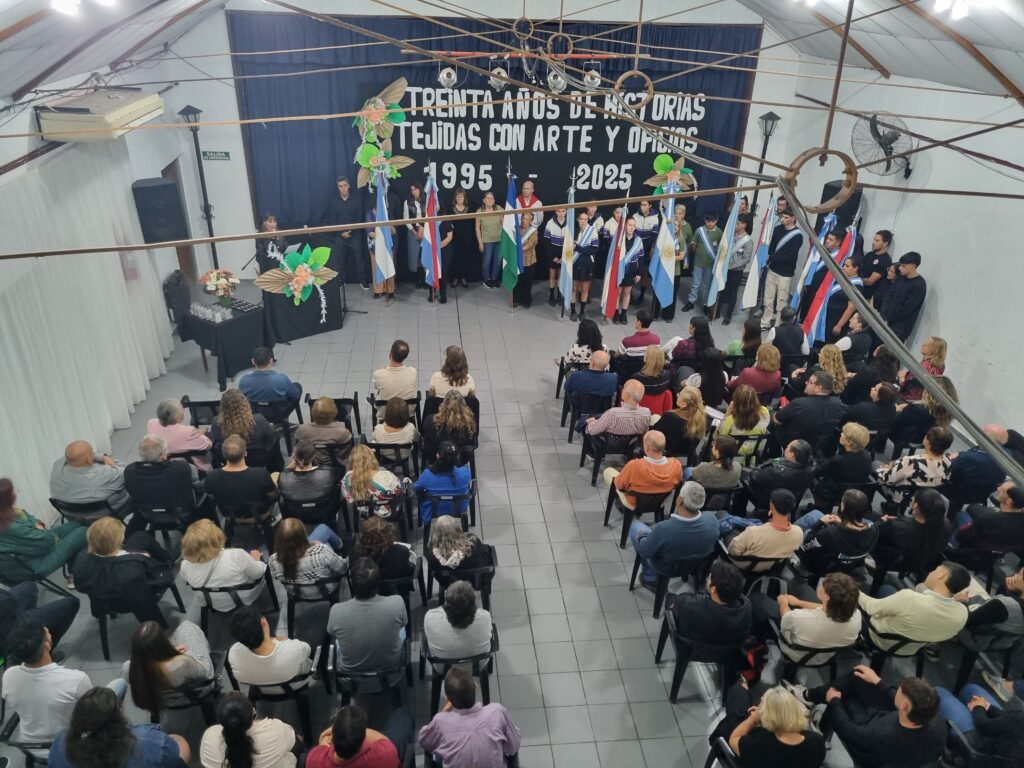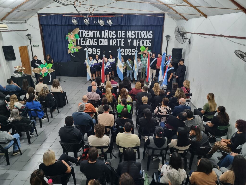 Ayer por la noche, en el salón de la Escuela Municipal de Artes y Oficios, se realizó el acto conmemorativo por los 30 años de trayectoria de la institución, con la presencia de autoridades municipales y educativas, todos los que han formado parte, los que actualmente se desempeñan en la escuela, y público en general.